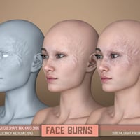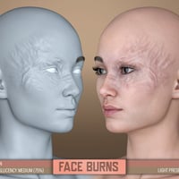 HD Face Burns for Genesis 8 Females is a collection of 17 facial burn scars created through the careful combination of HD morphs and LIE material presets for flesh texturing. In addition, we have included a mirror option for a total of 34 HD Morphs.