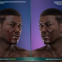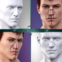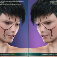 HD FACE WOUNDS 2 for Genesis 3 and 8 Male(s) is a collection of 11 open facial wounds created through the careful combination of HD morphs and LIE material presets for flesh texturing and optional blood layering. In addition, we've included a mirror option for ten wounds, totaling 21 HD Morphs, 42 Wounds LIE Preset and 42 Blood LIE Presets per generation (extra Iray presets have been included for use on dark skin characters)!