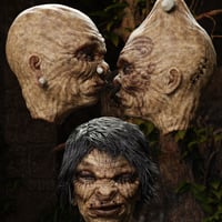 Sometimes you may find it hard to get a-head in this world, but the corporate headhunter may have just the thing for you. Headlee is a richly detailed shrunken head character for Genesis 8 Male(s) who is designed to be both creepy and fun. Able to use all Genesis 8 Male shaping morphs and emotions (to varying degrees), you can create a variety of looks for him.