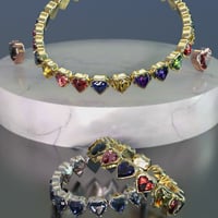 A sweet collection inspired by the trend of shaped tennis bracelets and necklaces, with earrings to match! Customize the color of each gem and select from Gold, Silver, or Rose gold for your model's new favorite accessory collection.