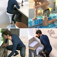 The poses are carefully matched to fixtures spread across all three levels of the deluxe home. Poses are grouped by floor number. There's even a rooftop repair pose for the brave handyman.