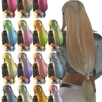 A gorgeous hair, but with these 110 new fantasy colors, you'll love it even more. Bring the colours of the rainbow into your render and take this hair to another dimension. Ideal for any render which calls for Fantasy or Magic. Take a little walk on the wild side with these colors.
