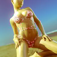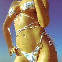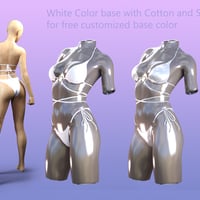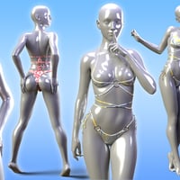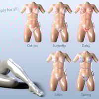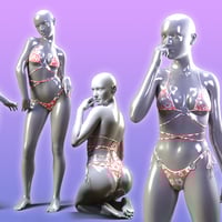 HelloLace Bikini is composed of 3 independents parts, bra, belt and bottom. It includes 6 sets of textures, 4 with beautiful patterns, 2 in white cotton or satin (which allow a personal customization of the basic colors) different stitches and shaders effect, matte, plastic, glossy.