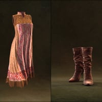 A two piece, fantasy-imbued ensemble to appease those who muse over the days of yore. Adrift in dreaminess and a sense of wonder. Equipped with a pair of boots and ever-flowing frills, doth command the flux of winds.