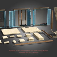 Window and Sliding Door Blocks with rustic shutter doors are fully rigged.