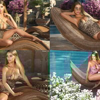Wicker Poolside Sun Bed and Poses for Genesis 9, 8 and 8.1 Female has 20 Full Body Pose Presets with Wicker Poolside Sun Bed for Genesis 9, 8 and 8.1 Females.