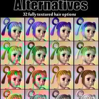 Add some extra Anime style to Hitomi Hair. Included are 32 fully textured hair colors with matching hair clasps. Also included are separate presets to apply the clasps only, to expand the mix and match options.