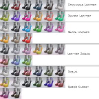 HL Platform Stiletto Heels are stylish summer shoes. Six surface types: Crocodile leather, Nappa leather, Zigzag embossed leather, Glossy leather, Suede, and Glossy suede.