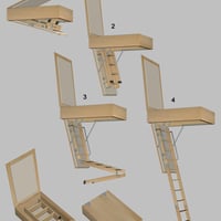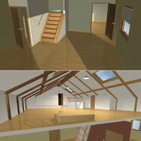 The interior of the house is fully detailed, with everything from electrical switches and sockets to baseboard and molding. The 1st floor rooms have posable doors, windows and window-blinds, and stairways from the hall and living-room below. The loft area is reached by a stairwell from the 1st floor, or by a folding ladder. It has dormer room on one side, plus a raised platform area with small back room. The dormer and platform can be switched off to create a single large loft space. Both sets of stairs also have built-in cupboards.