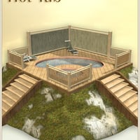 The Hot Tub set features an interchangable 'plain' decking area as well as an integrated hot tub. Also included are removable fence sections, contemporary sun lounger chairs and a surrounding area with steps.