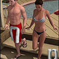 Victoria 4 and Michael 4 can enjoy a wonderful hot tub party with these easy-to-use 3D poses for Poser and DAZ Studio.