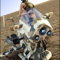 HoverBike is a science fiction vehicle with three conforming attachments: guns, trunk, and police light. The set includes MAT poses for the HoverBike and figure poses for M4 and V4 as pilots and passengers.