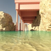 HT Greek Pink Columns Dream is a surreal 3D environment blending the elegance of classical Greek columns with a dreamy palette of soft pink tones and a serene ocean backdrop.