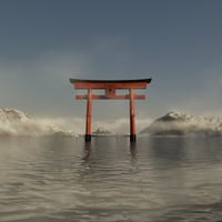 HT Japan Torii Gate Lake is a massive, open 3D environment for Daz Studio, featuring a serene lake with a majestic Japanese Torii gate at its center.