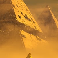 Its massive scale and sandy fog create a cinematic backdrop for epic moments, lost worlds, or surreal dreamscapes.
