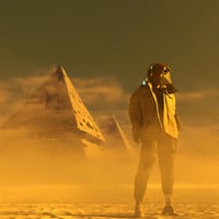 HT Pyramids of Atlantis is a vast and atmospheric 3D environment for Daz Studio, featuring two monumental pyramids rising through a thick haze of desert sand.