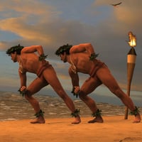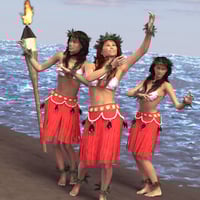 Hula kahiko is often defined as hula dances choreographed before circa 1800 C.E. and were said to be created as a depiction of Pele's (the goddess of fire) escape from her sister Namakoakaha'i (the goddess of the ocean). Pele had created the islands of Hawaii, where the waves of her sister would never touch her, and at a chain of volcanic craters she danced the first hula, signifying she had won. Celebrate your own victory with a set of realistic hula poses for M4, V4, and the Genesis Basic Male, Basic Female, M4, M5, V4, and V5. Includes twenty five poses of strength and agility for the men and thirty one poses of graceful movement for the women to illustrate the narrative dance of hula. A total of two hundred twenty four poses.