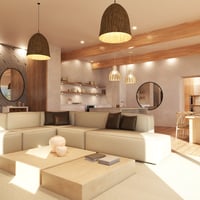 The Hygge Flat has a perfect cozy interior with a touch of Scandi style while keeping it clean and fresh. Made of natural materials, this flat offers an aesthetic that is both neutral and chic, perfect for neutral lovers.
