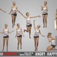 This is an essential collection of great poses for the Genesis 3 Female(s)! Includes loads of action poses for a wide range of activities, high quality standing, sitting, kneeling, laying, and emotional poses included too!