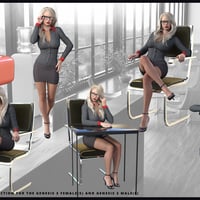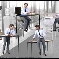 Get to work with this hot new collection of office poses for the Genesis 3 Female(s) and Genesis 3 Male(s)! Includes every pose you need for a wonderful office scene now! Working at a desk, getting supplies, chatting with co workers, it's all covered here!