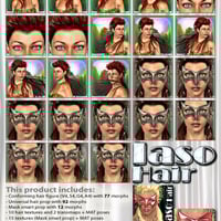 Ultra versatile hairstyle with a lot of options. Includes a conforming hair figure for V4, S4, A4 and G4, and a Universal Hair Prop. This hairstyle also includes a Mask for that fantasy look.