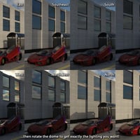 Dome rotation presets cover 0 degrees through 350 degrees in 10 degree steps. The dome rotation presets can also be used with any other HDRI environment you may own.