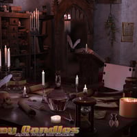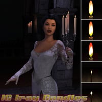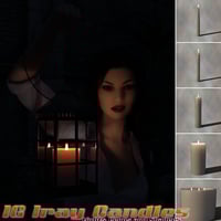 IG Iray Lights and Shaders - Candles brings you 15 candle designs, from 3 different designs of candelabra candles and 3 tapered candles to 5 different designs of pillar candles, plus 4 unique melted candle designs. All 15 designs include a 3d modeled flame that includes morphs for simulating wind and flame flicker allowing you to quickly and easily animate a dancing flame. Plus several of the candles include morphs to adjust the height of the candles while also simulating the look and feel of a real burning, melting candle