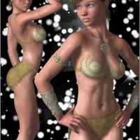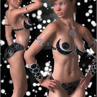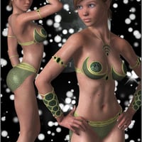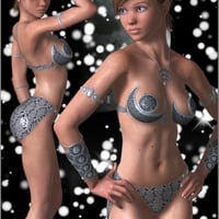 Imagine the Fantasy II includes six sets of gorgeous detailed textures for the Classic Fantasy: Lady of the Moon featuring silver and gold metallics, leathers and beautiful gems! The sets include diffuse maps (texture maps), bump maps and displacement maps. All six sets have been optimized for DAZ Studio and Poser 6+!
