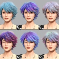 Inco Hair comes with extensive character support for a wide selection of popular figures. Thanks to the Auto-Follow system, the hair can be used on many other characters as well. If you encounter minor distortions, a ready-to-use smoothing modifier preset is included to help correct them with a single click. Style dials are also available to help you fine-tune the look, particularly for adjusting the front strands or achieving dynamic, wind-blown effects. You'll find a variety of these styling options showcased in the promo images. Whether you're going for cute and messy or sleek and stylized, this hair has you covered.