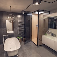 Industrial meets luxury in the Industrial Bathroom.