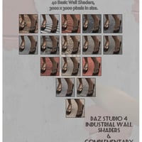 Bring the workplace to life with these 101 industrial-based wall shaders for DAZ Studio. The 3D collection strives to bring high quality and high resolution textures for your rendering projects. Additionally, one DAZ Studio light set has been included in 4 different intensities to help bring out the best possible renders for your shaders.
