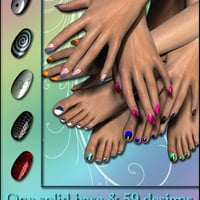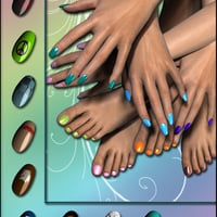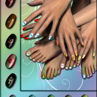 You have the perfect outfit and matching makeup. The hair color is just right. But what about Vicky's nails? Oh... you could just set the Diffuse color and Glossiness and that would work... But Vicky's nails will look so plain. With this package you will have forty nine different designs to choose from and select what ever color you want from your computers' color pallet! You can also layer the designs over each other.