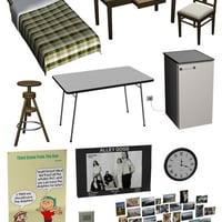 The Bedsit (aka S.R.O.) is a typical self-contained apartment for students or anyone on a budget - a single, multi-purpose room with a kitchenette, walk-in closet and bed. Luckily, the landlord added some extra furniture, and with a few of the resident's personal effects, it's quite cosy.