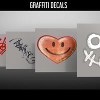 Decals ignore UVs and material types, instead they overlay themselves on a given surface, rather than depend upon its surface parameters. Iray GraffitiWorx contains Colored decals, Stickers and a range of decals with optional color selections