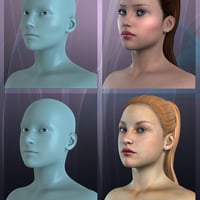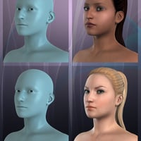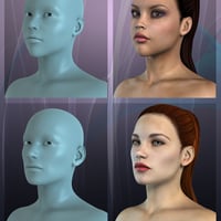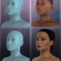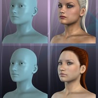 It Takes Character offers you fully custom sculpted head and body morphs for the Genesis 2 Female give you the ability to mix'n'match between the 12 unique heads and 12 different body shapes. Presets are provided to quickly add a head or body and, just as easily, remove them. Dials, which are situated in Parameters or Shaping under Actor>Full Body>Real World and Actor>Head>Real World, allow you to fine tune your characters. If you own the body morphs from DAZ, you can mix in even more detail such as tone, muscle or weight. When mixing faces from the morph dials, keep in mind that some eyes have been made larger or smaller and ERC has been frozen to make them work; you should have success with most mixing, but there can be some exceptions. All in all, the goal has been to give you diversity and the ability to broaden your cast of characters for your images and animations.