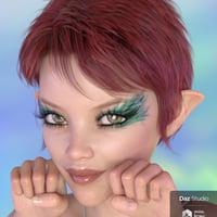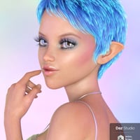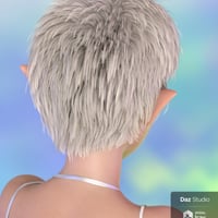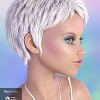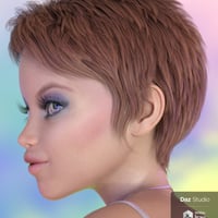 This short pixie hairstyle lays softly in soft cropped layers around the head and face. This is a relaxed feminine cut that can be utilized in a variety of contemporary, historical, and fantasy/ sci-fi renders.