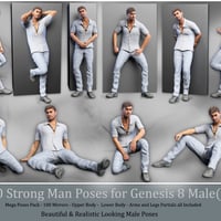Hello studly Genesis 8 Male(s)!This pack includes 100 masculine poses with mirrors and partials, and each and every pose crafted to maximize realism and detail.Product also includes Mix & Match capabilities with the included Partials. 100 Full Body, Upper Body, Arm LR and Leg LR Poses mean you get 600 Poses with infinite possibilities.