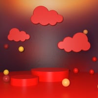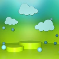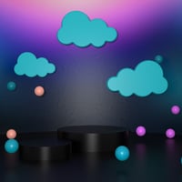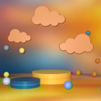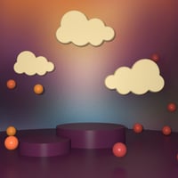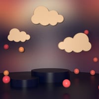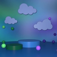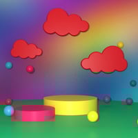 Jaelie’s Dreamscape Props combine floating cloud forms, sculpted platforms, and playful sphere accents to create enchanting spaces filled with motion and light.