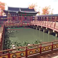 - A Korean temple grounds environment