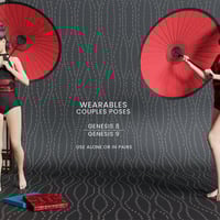 These Japanese Portrait Studio Poses are just right for creating perfect portraits or scenes with our Japanese Portrait Studio & Props set. With poses for both Genesis 8 and Genesis 9 Male and Female, PLUS interactive couples poses that work with all the fans, umbrellas, stools, and pillows in the environment, your exquisite Japanese renders will shine!