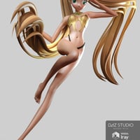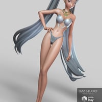 Solid sweeping ponytails with slight curls and rigging for added motion possibilities. Try her out for your favorite anime, from Sailor Moon to Miku Hatsune, or even give her a bit of a mix and try Toon or Bishijo or even Sculpture renders.