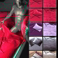 Cushions, Duvets and Covers have front and a backsides that can be textured/shadered/made invisible independently. The texture sets can be applied with UberSurface DUF Material files for DAZ Studio 4.7 and Velvet Preset MC6 files for Poser 9++. Every set also comes with a grey version of textures so you can choose your own diffuse color combinations for the Cushions, Duvets and Covers.