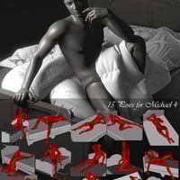 Set 1 includes Cushions and Cover with 5 texture options (Pose 1-5), Set 2 includes Cushions and Duvet with 5 texture options (Pose 6-10) and Set 3 comes with Cushions, Duvet and Cover with 5 texture options (Pose 11-15). BeddingZ morphing props fit to Michael 4 and/or to Michael 4 Bodybuilder Morph, Morph++, (Poses are provided via INJ/REM .PZ2 files( and Genesis 2 Males Gianni6, Lee6 and Michael6.
