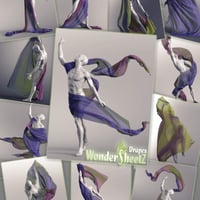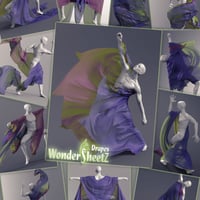 "WonderSheetz" is a combination of 15 carefully handcrafted, manly and highly artistic poses for Michael 7 made with real life photo references. The 15 very high-res morphing WonderSheetZ props are made mostly with wind force and/or low gravity to get this light and "foldy" look. Every Michael7 pose has it's own designed WonderSheetZ prop with six or more different drapes each with all in all 153 different drapes.