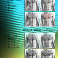 With this pack you will get Geometry Shell and Bodyhair Presets for Genesis 3 Male(s) and Genesis 8 Male(s). Bodyhair includes lower and upper arms, chest and abdomen, back and hip, upper and lower legs in numerous different variations and degrees of coverage. It was thoroughly hand-painted in Cinema4D's Bodypaint and Adobe's Photoshop after real life photo sources of human hair growth patterns. Anatomical Elements are supported as well in both DAZ Studio renderers, 3Delight and NVidia Iray. 34 different bodyhair options can all be set to 4 base colors: black, brown, blonde and red, and 4 transparency strengths: default, strong, stronger and strongest (appearance). Hair color can also easily be changed in the Surface's Tab Diffuse channel - be creative with the aliens! ;)