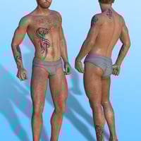 Zeno comes with a variety of options including a very unique and custom face, a skin with or without tattoos - smooth or in different grades of naturally painted body hair in as usually high-quality 'Jepe's style'.