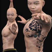 Jinn’s textures include two head maps, a detailed un-scarred face and a face scarred from a battle long ago. Eight Kabuki inspired face paints, four with traditional white base or four without. Eight eye maps, four colors with or without highlights. Last but not least, gorgeous body maps with or without detailed Irezumi inspired tattoos as well as options for scars or no scars!