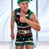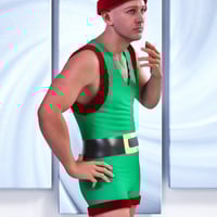 JMR dForce Christmas Outfit for Genesis 9 and 8 Males includes 2 pieces: Bodysuit, Hat.