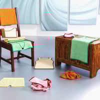 The colors of the materials can be combined using color shaders to get many different dress colors.