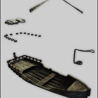 Jolly Boat is a type of ships' boat used during the 18th and 19th centuries. Its use was to ferry people to and from the ship as well as taking people on other pursuits, like looking for buried treasure. Included in this multi-part set is the boat itself, a set of oars, a single oar prop, sacks, ropes and the water plane as used in the promos. A preload has been included to also load the boat complete.